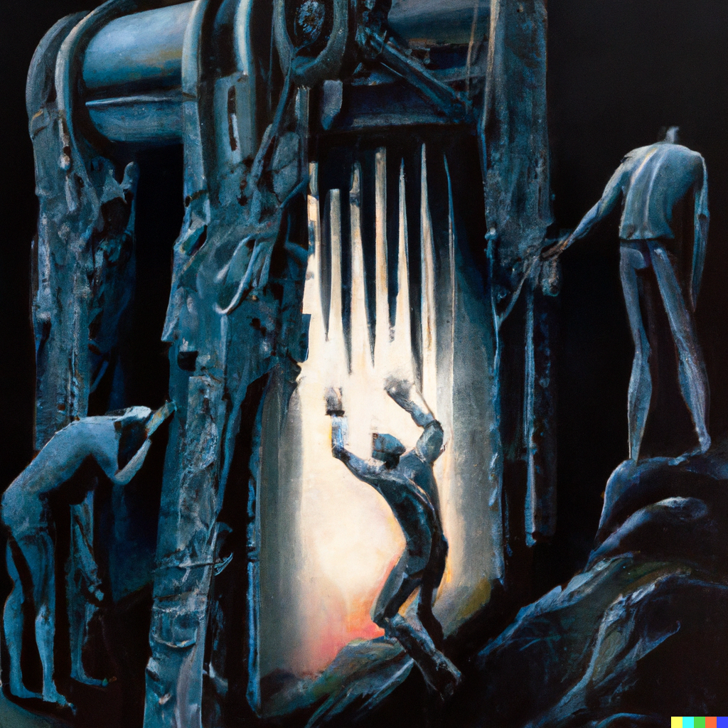 The people requested more images to be generated. Below are the best images, of the best sets of images, of the best queries people suggested. My favorite is the "Wheels of Progress" painting, that said, many of the others below are crazy good as well. Especially considering the time spent making them; Minutes, or seconds even.